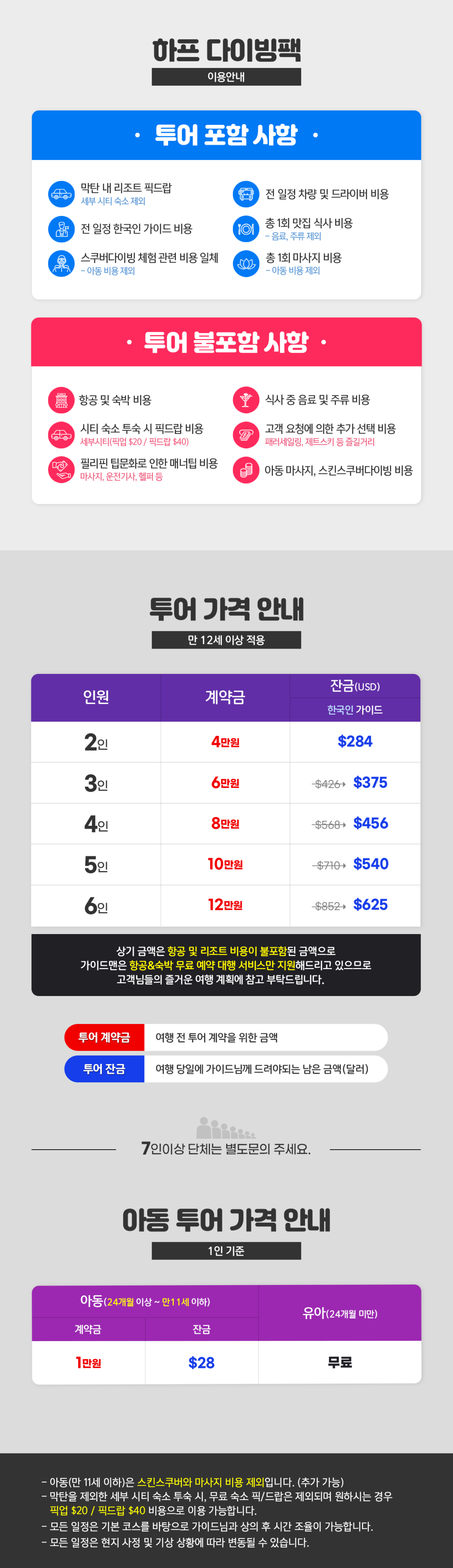 ※2명 여행시 아동/유아는 성인요금으로 받습니다.