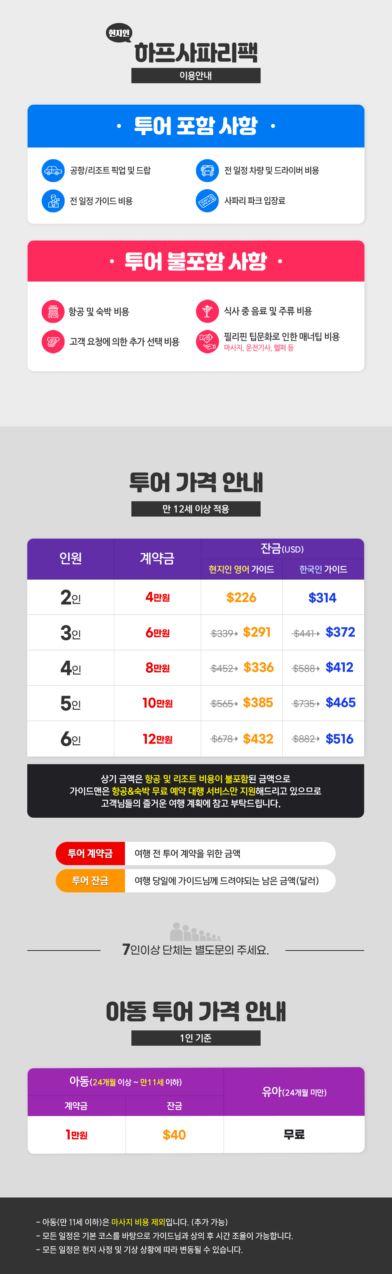※2명 여행시 아동/유아는 성인요금으로 받습니다.