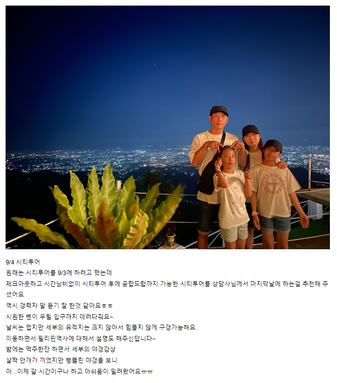 Main text of travel review: https://cafe.naver.com/cebuguideman/62363