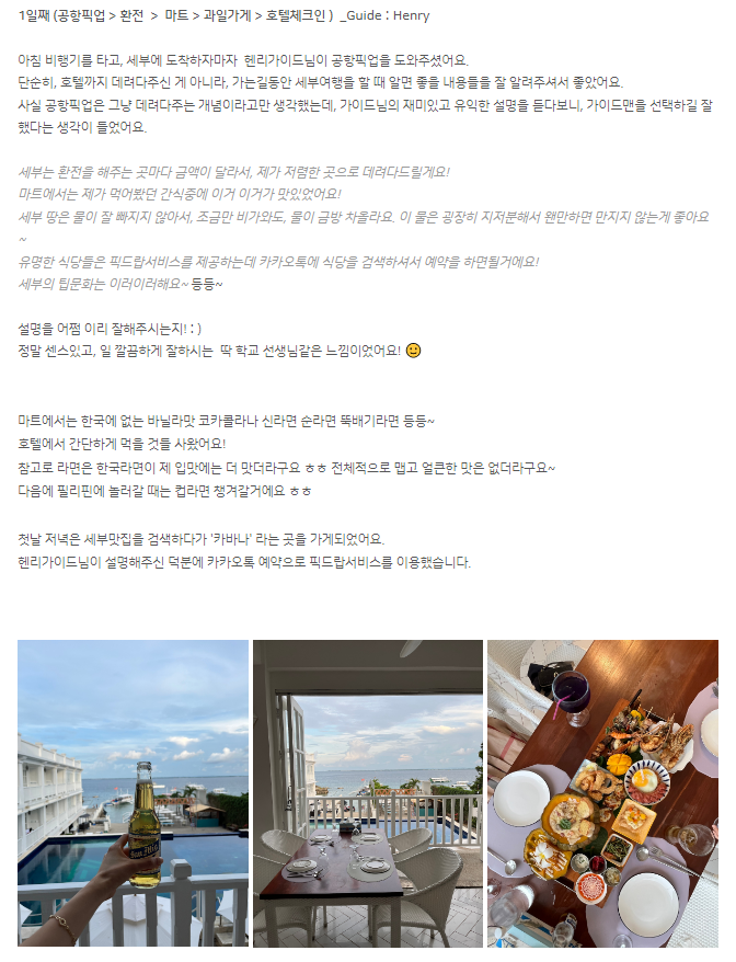 여행후기 본문:https://cafe.naver.com/cebuguideman/62947