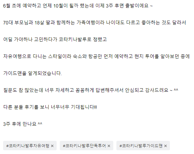 Main text of travel review: https://cafe.naver.com/kotaguideman/22804