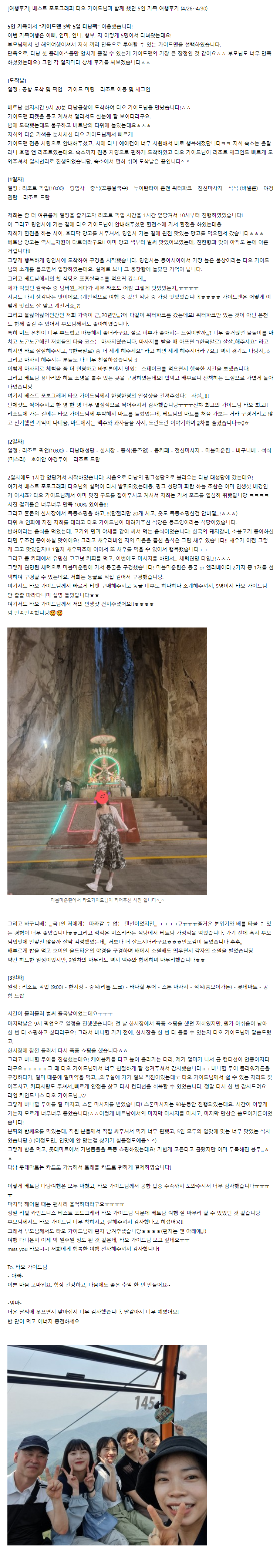[다낭] [여행후기] 베스트 포토그래퍼 타오 가이드님과 함께 했던 5인 가족 여행후기 (4/26~4/30) (긴글 주의)
