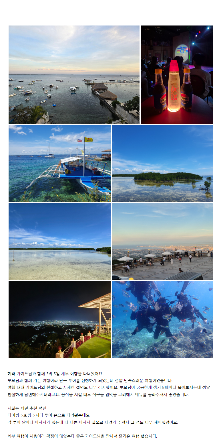 [세부] 헤라 가이드님과 함께 한 3박 5일 세부 여행 (다이빙+호핑+시티)